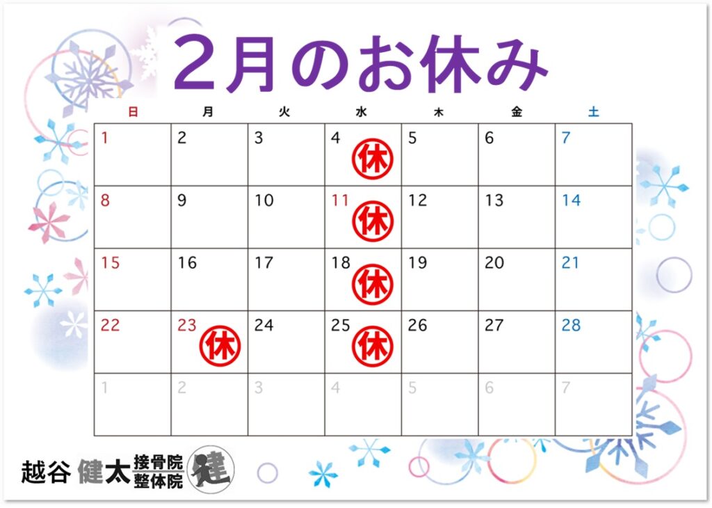 2月のお休みをお知らせいたします